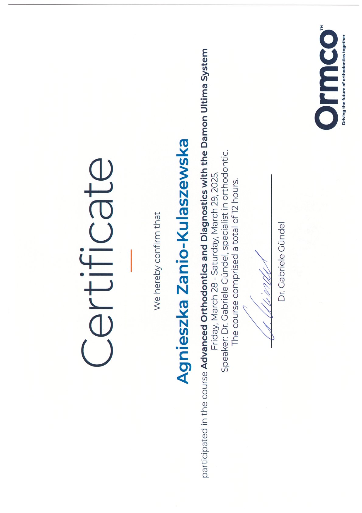 Doktor nauk medycznych, specjalista ortodoncji, specjalista stomatologii zachowawczej z endodoncją; członek Polskiego Towarzystwa Ortodontycznego. W Odent zajmuje się leczeniem ortodontycznym zarówno dzieci jak i dorosłych. Wady zgryzu leczy aparatami stałymi – samoligaturującymi oraz systemami nakładkowymi, a w przypadku najmłodszych pacjentów – także tradycyjnymi aparatami wyjmowanymi. Do leczenia ortodontycznego podchodzi interdyscyplinarnie i holistycznie, ze ścisłą współpracą z lekarzami innych specjalności, często przy wsparciu fizjoterapeuty oraz logopedy. Prywatnie jestem mamą trzech wspaniałych córek, wielką fanką podróży i …pięknych uśmiechów.