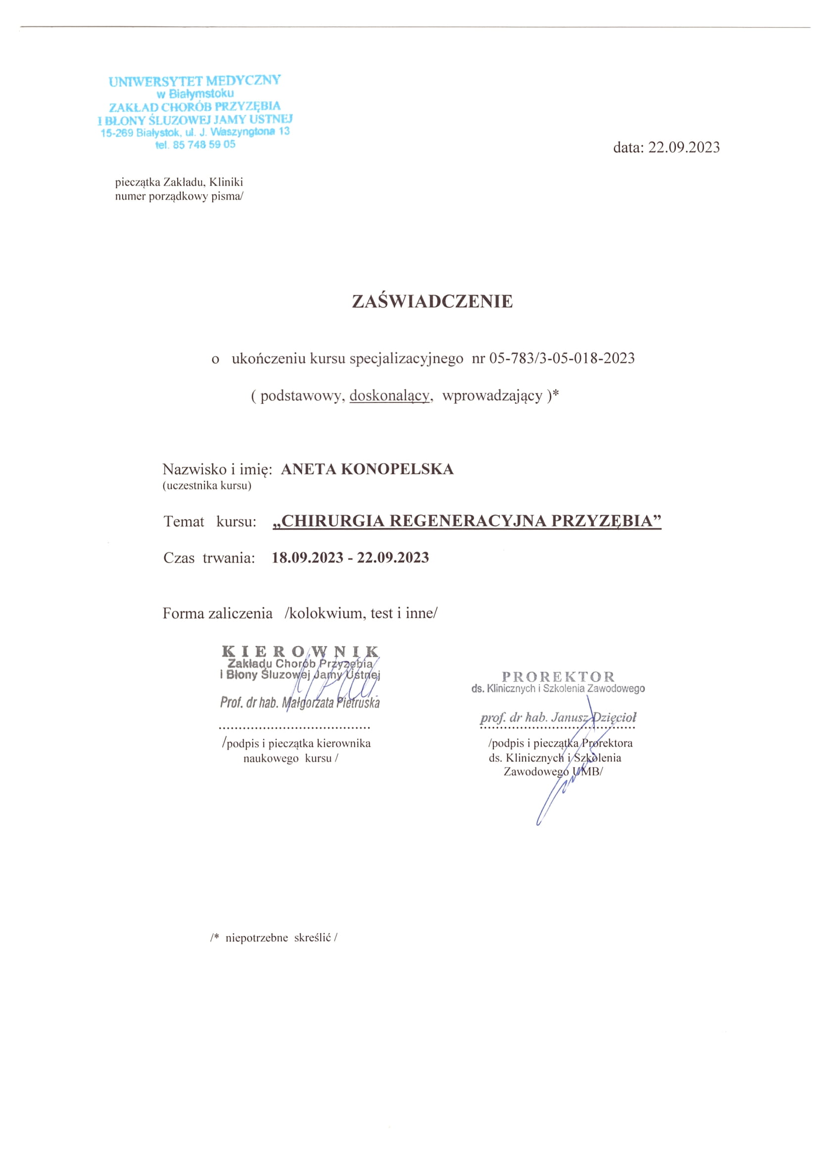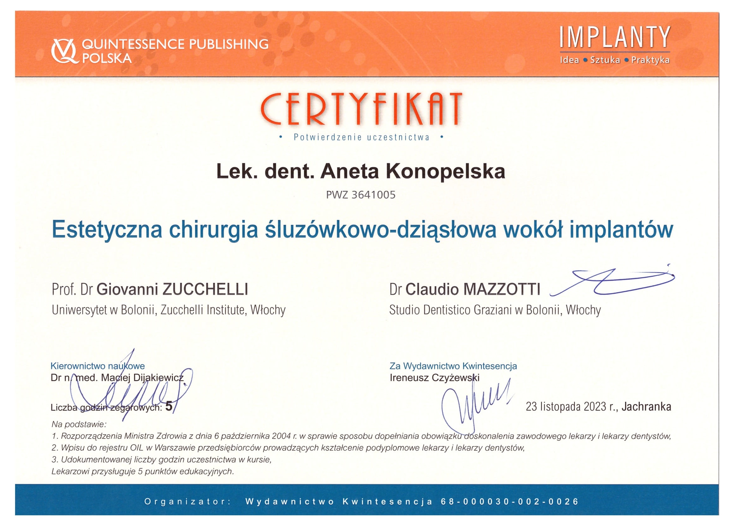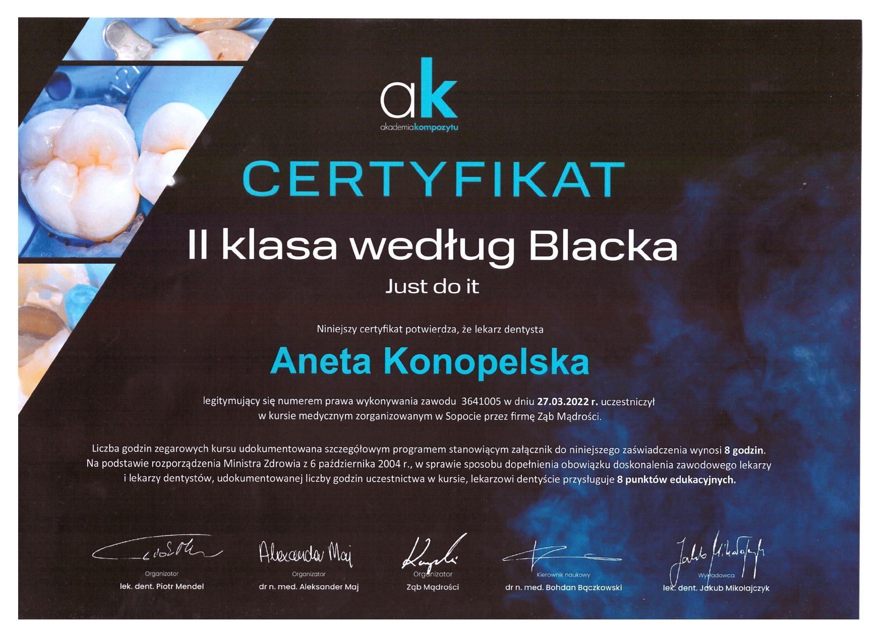 Stale poszerzam swoją wiedzę oraz umiejętności praktyczne. Praca w powiększeniu pozwala mi podnieść jakość i przewidywalność zabiegów.
