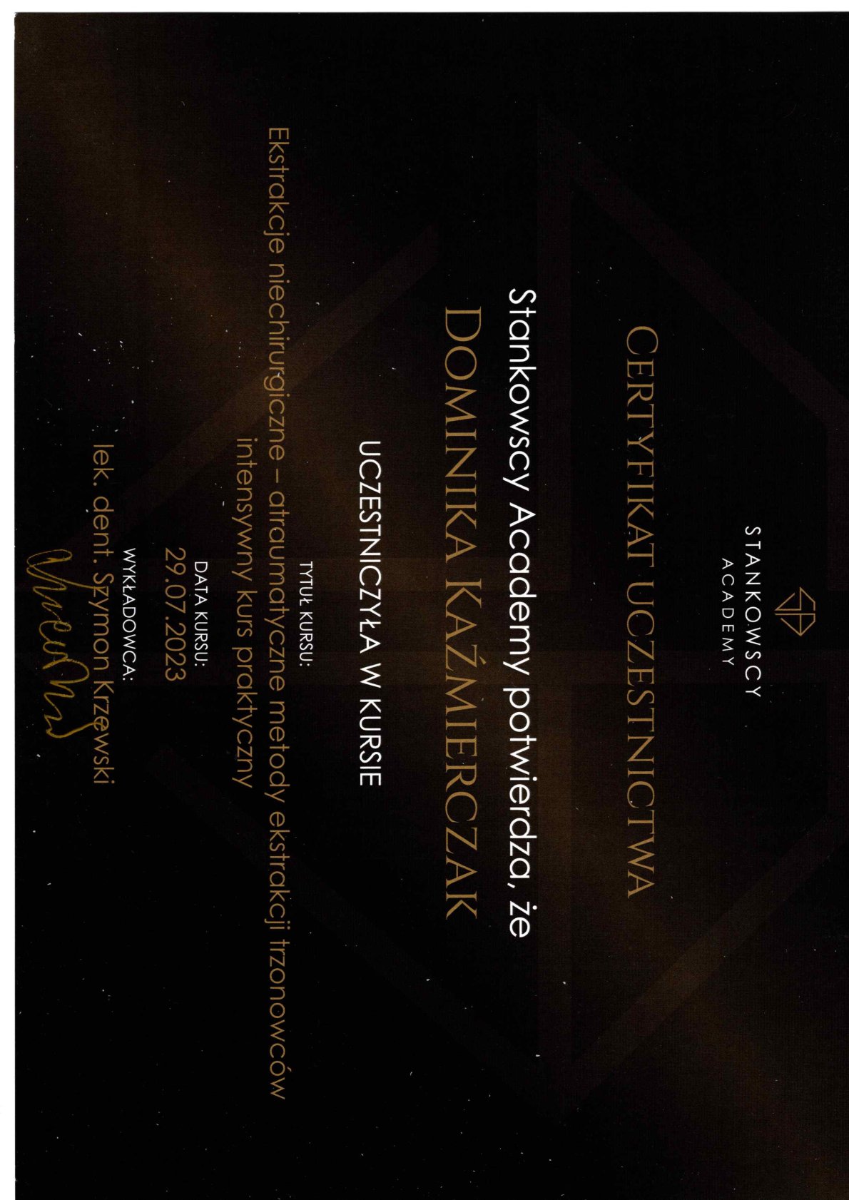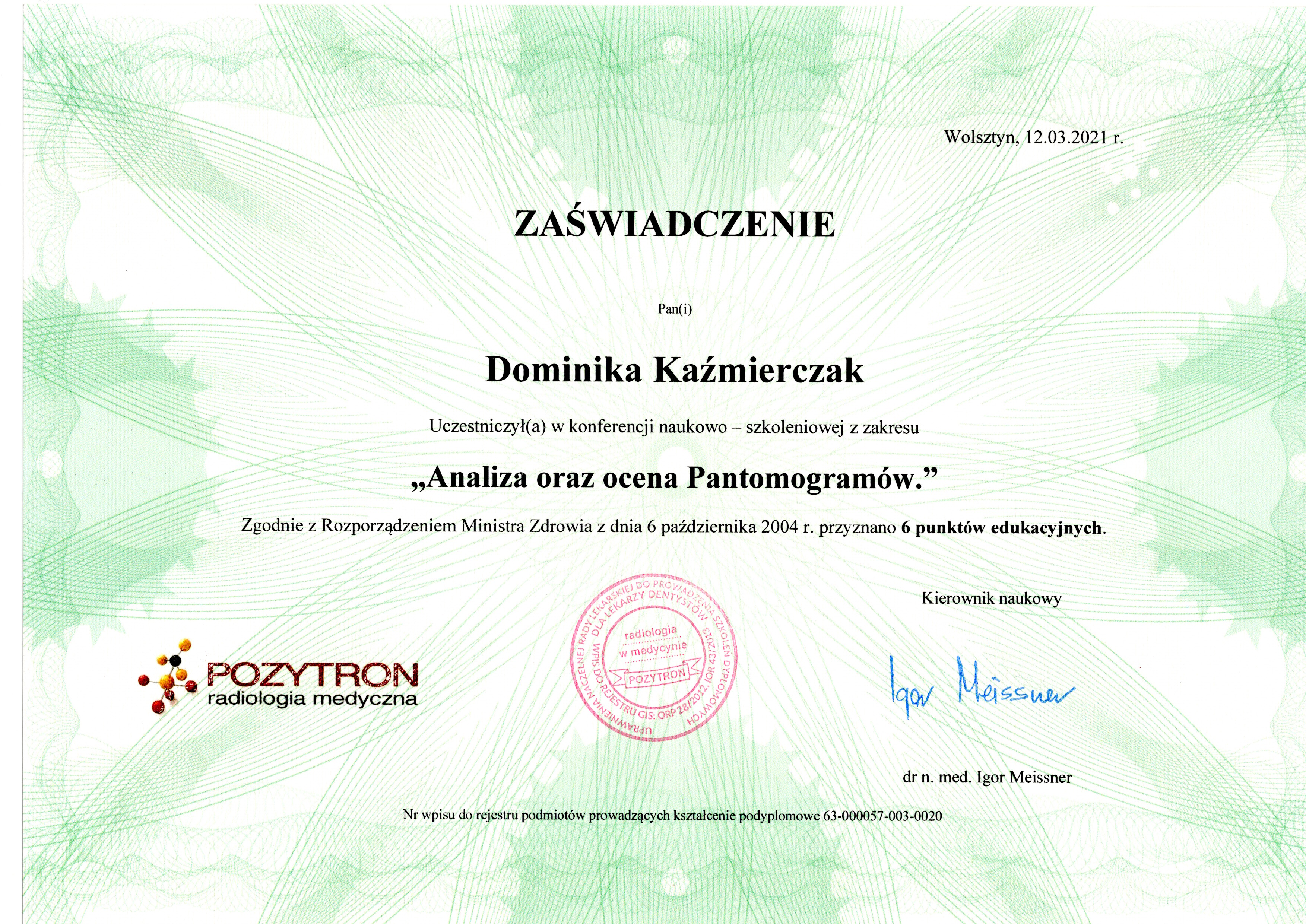 W swojej codziennej praktyce klinicznej wykonuję usługi z zakresu profilaktyki, stomatologii zachowawczej i pedodoncji. Uczestniczyłam w wielu kursach z zakresu stomatologii zachowawczej, endodoncji i pedodoncji. Stale poszerzam swoją wiedzę biorąc udział w licznych szkoleniach. Zależy mi na kompleksowym leczeniu i podejściu do Pacjenta. Cechuje mnie empatia i zaangażowanie w proces leczenia. Uwielbiam zwierzęta i naturę.