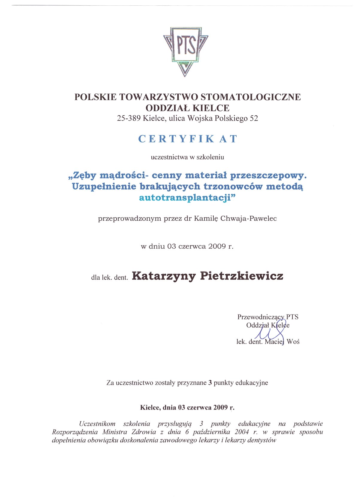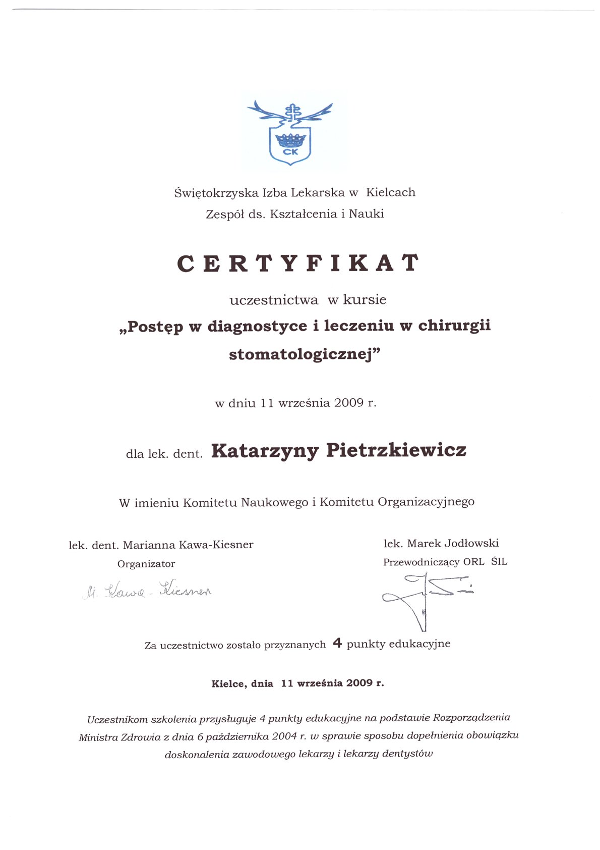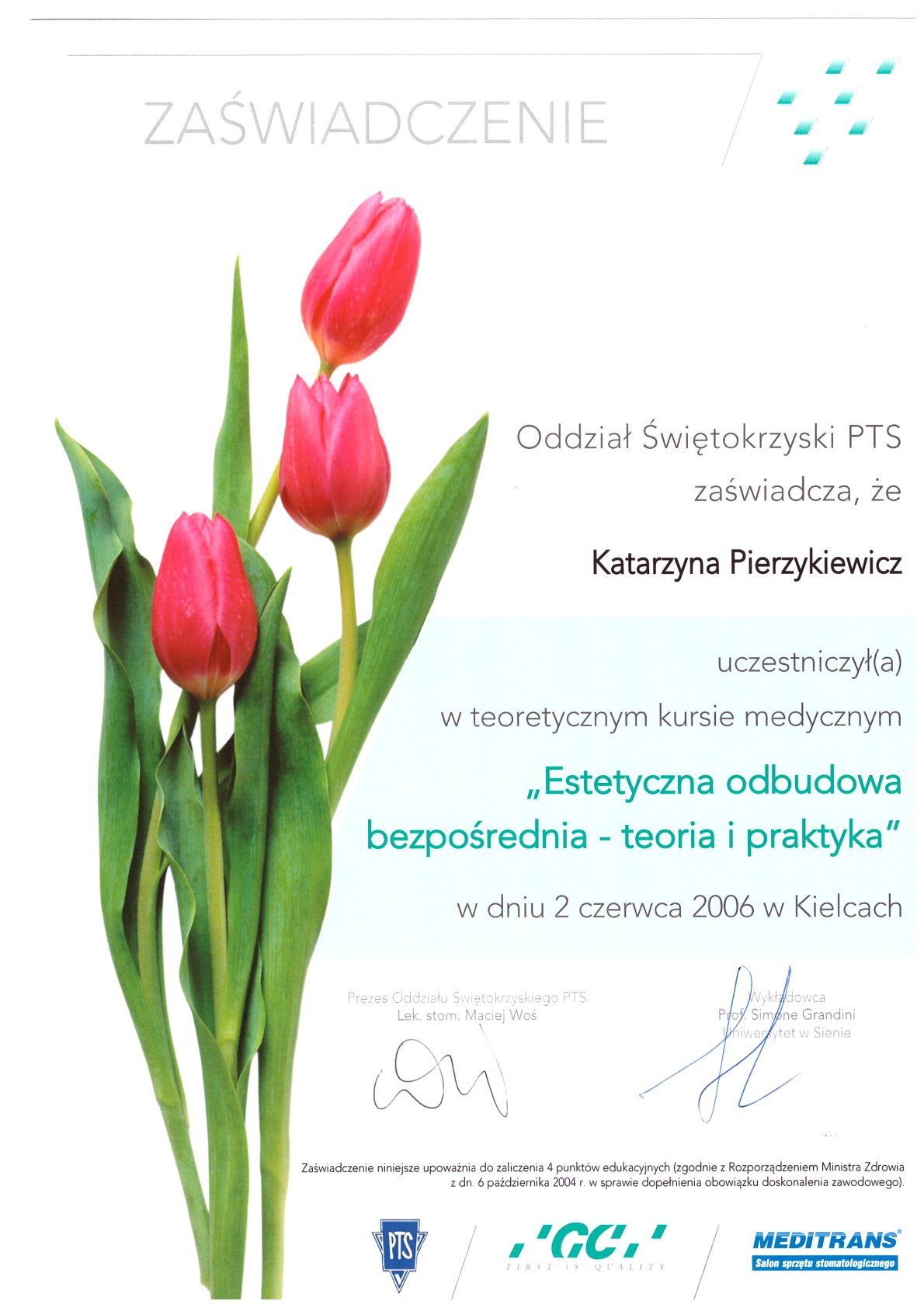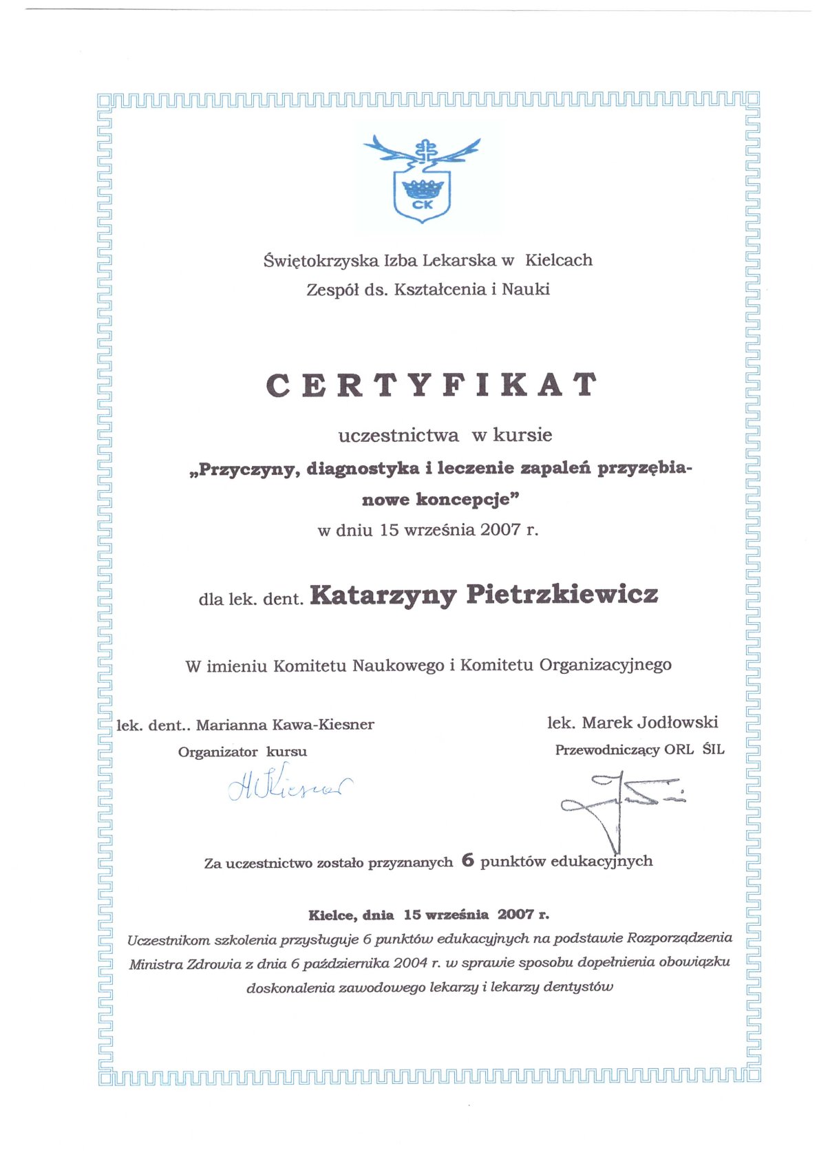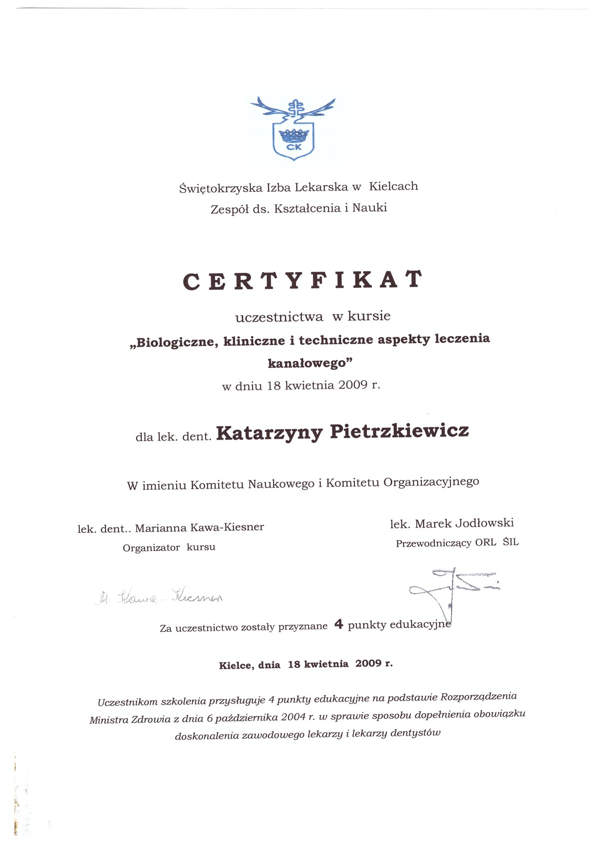 Окончила стоматологический факультет Поморской медицинской академии в Щецине со званием доктора стоматологии. Она совершенствует свой опыт и навыки на многочисленных конгрессах, симпозиумах и практических семинарах под наблюдением самых выдающихся авторитетов в области консервативной и эстетической стоматологии, пародонтологии и протезирования. Она также получает огромное удовольствие от лечения детей. Особенно ее интересует применение современных методов лечения пациентов с известной патологической стираемостью и их протезирование и консервативное лечение. Для проведения точных процедур она использует стоматологические лупы и микроскоп. Пациенты ценят ее за компетентность, четкое объяснение стоматологических сложностей и дружелюбную атмосферу.