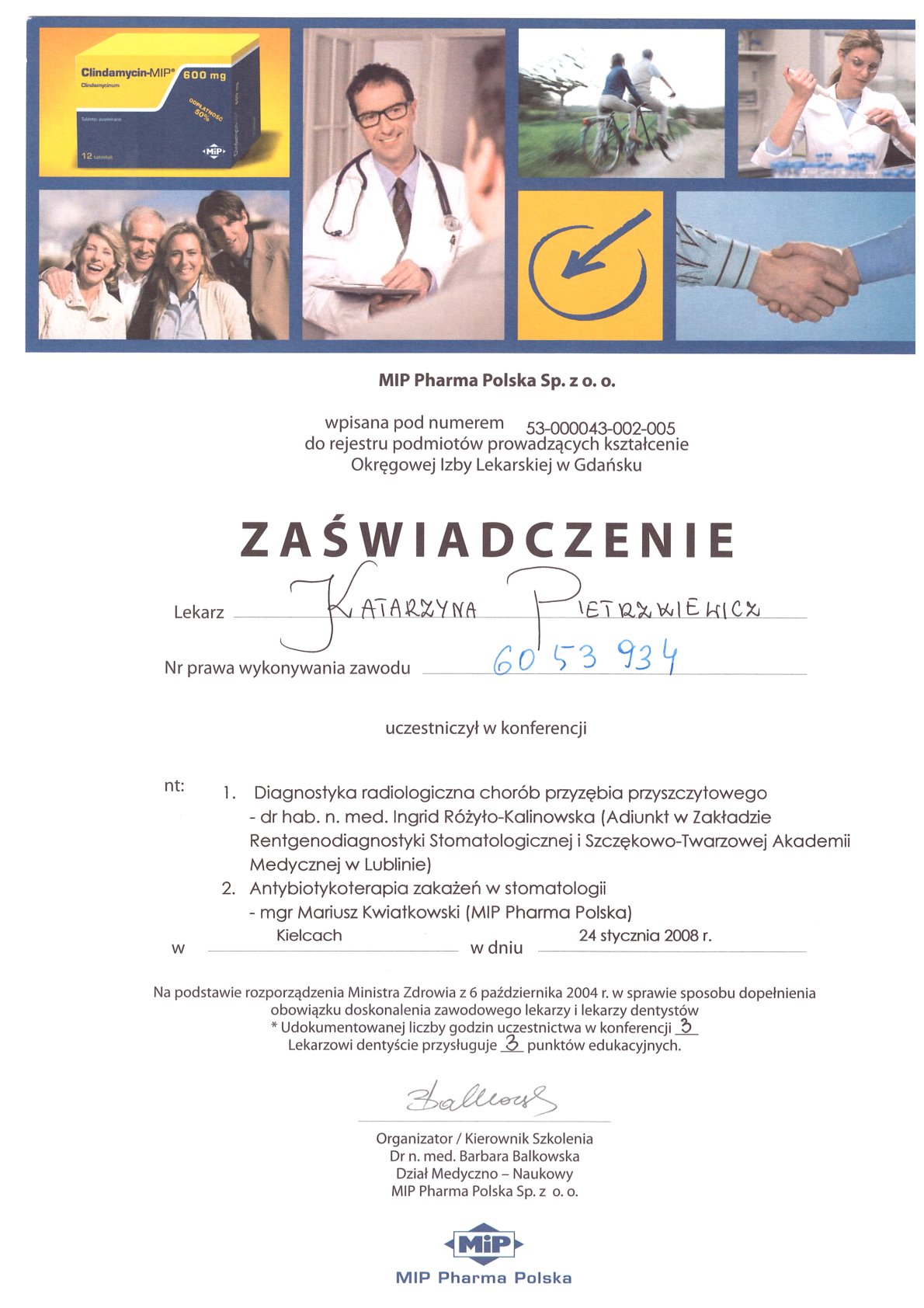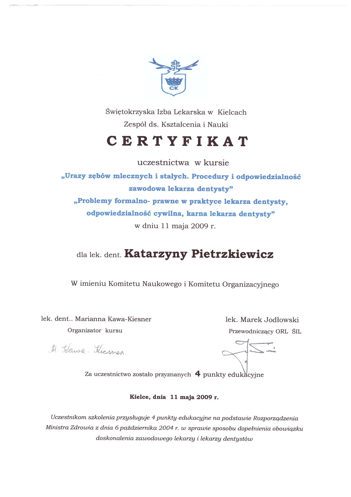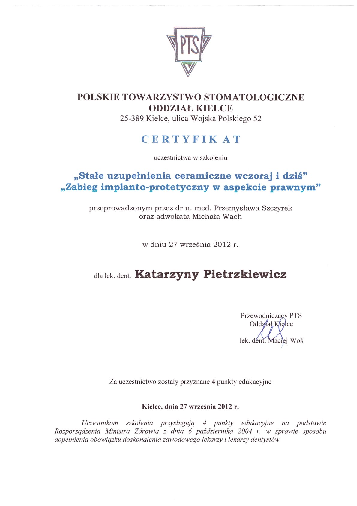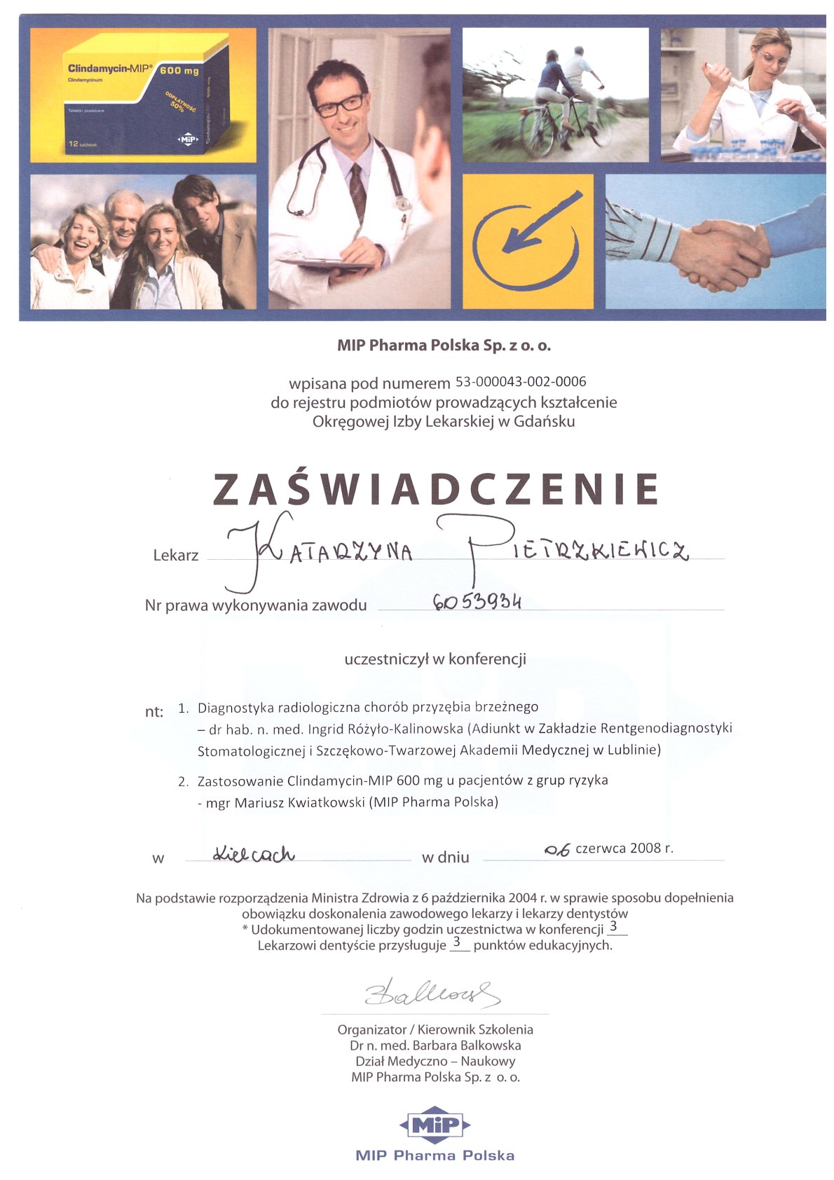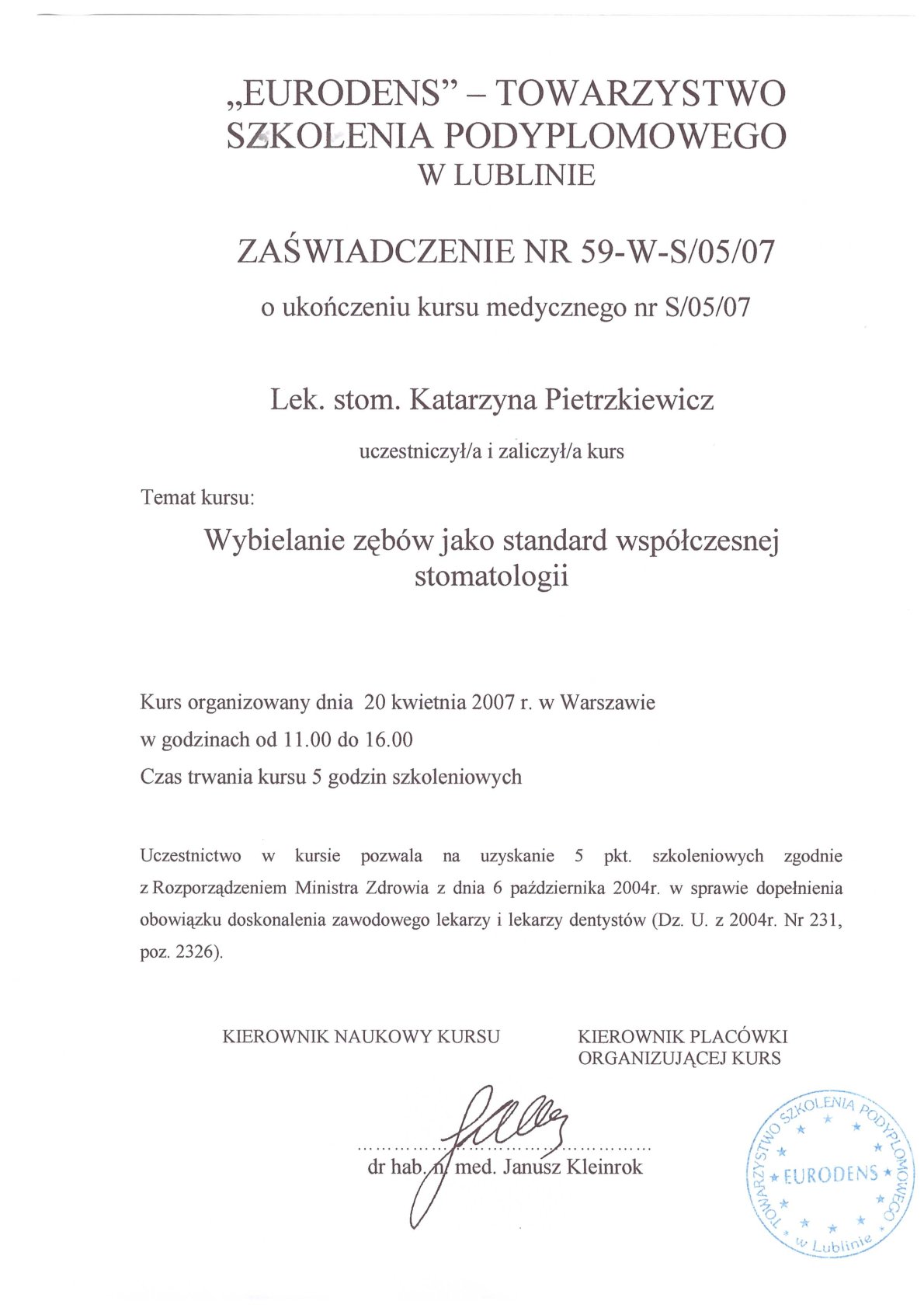 Окончила стоматологический факультет Поморской медицинской академии в Щецине со званием доктора стоматологии. Она совершенствует свой опыт и навыки на многочисленных конгрессах, симпозиумах и практических семинарах под наблюдением самых выдающихся авторитетов в области консервативной и эстетической стоматологии, пародонтологии и протезирования. Она также получает огромное удовольствие от лечения детей. Особенно ее интересует применение современных методов лечения пациентов с известной патологической стираемостью и их протезирование и консервативное лечение. Для проведения точных процедур она использует стоматологические лупы и микроскоп. Пациенты ценят ее за компетентность, четкое объяснение стоматологических сложностей и дружелюбную атмосферу.