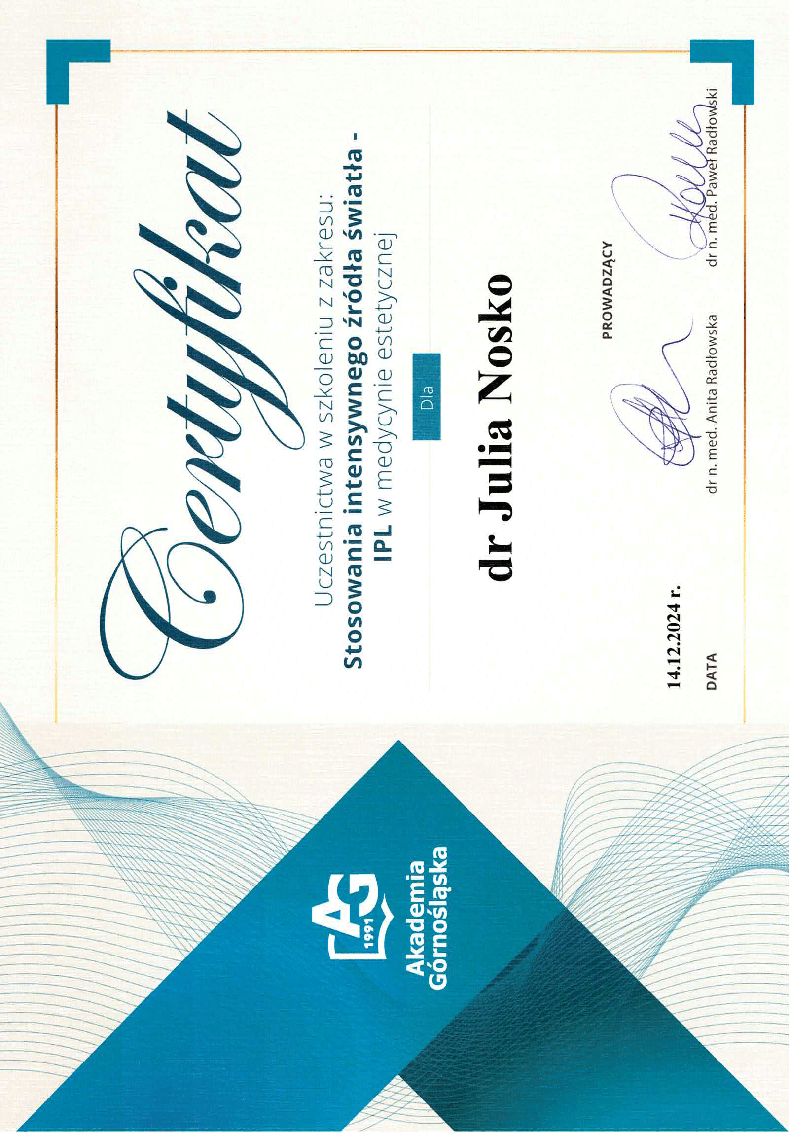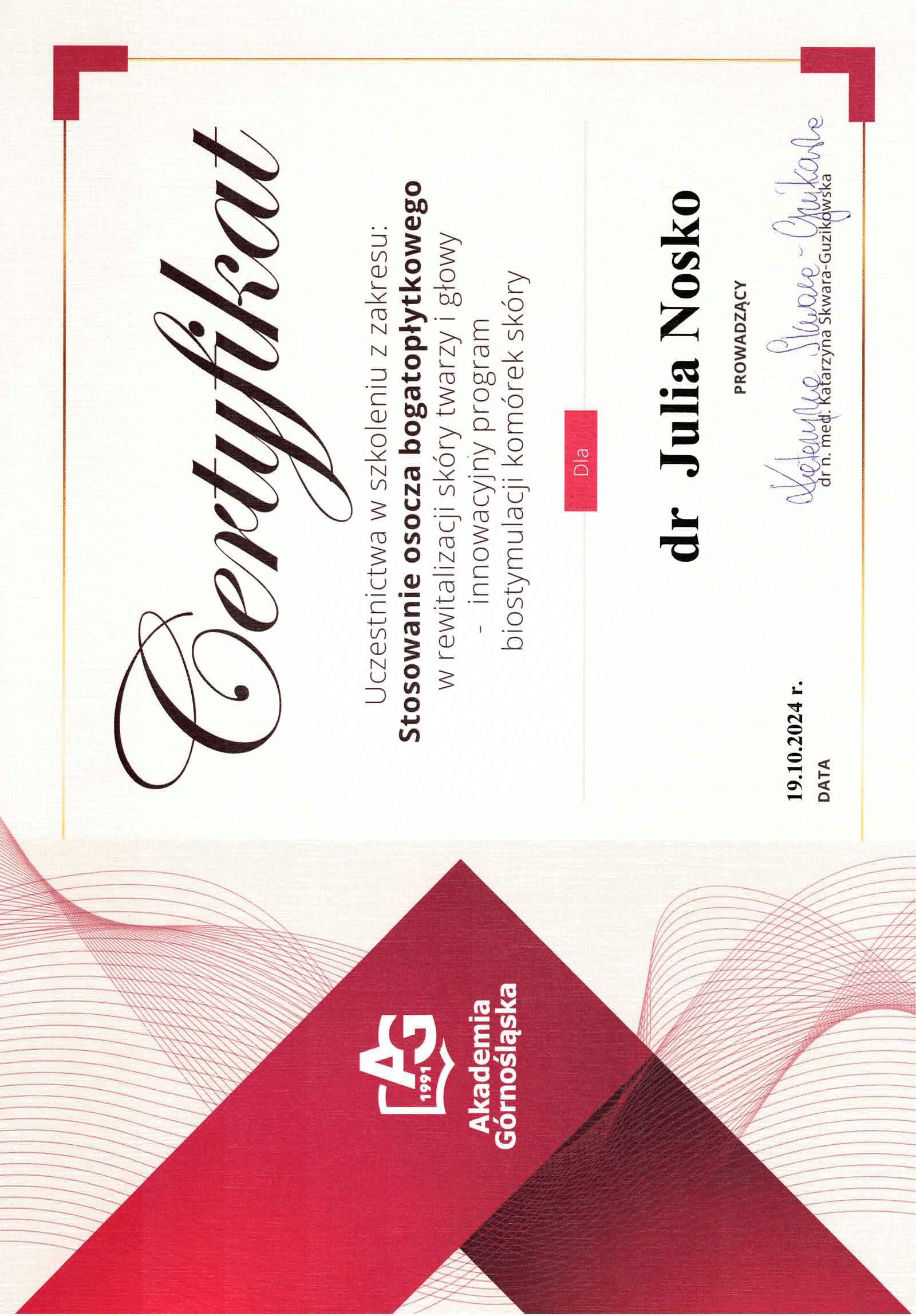 Я верю, что эстетическая медицина служит для раскрытия индивидуальной красоты. Я прислушиваюсь к потребностям своих пациентов и с помощью правильно подобранных процедур стремлюсь к тому, чтобы они чувствовали себя в своем теле наилучшим образом. Моими приоритетами являются безопасность пациента и эффективность лечения. Я окончила медицинский факультет Лазарского университета в Варшаве и прошла обучение по эстетической медицине в Верхнесилезской академии в Катовице, а также на многочисленных курсах в Варшаве и Вроцлаве. Кроме того, я работаю в Военно-медицинском институте. Я работаю комплексно, не ограничиваясь только 1TP2Тудинарным улучшением внешности. Я фокусируюсь на улучшении состояния кожи и профилактике старения, что является отличной инвестицией в здоровье и хорошее самочувствие.