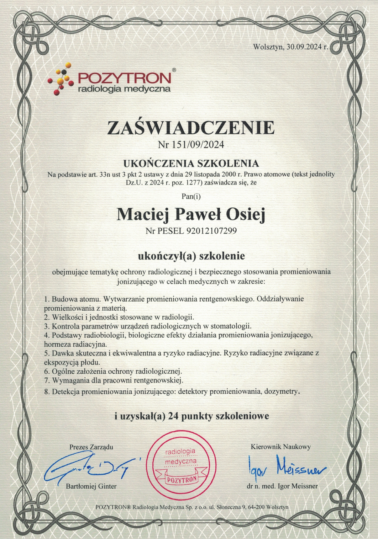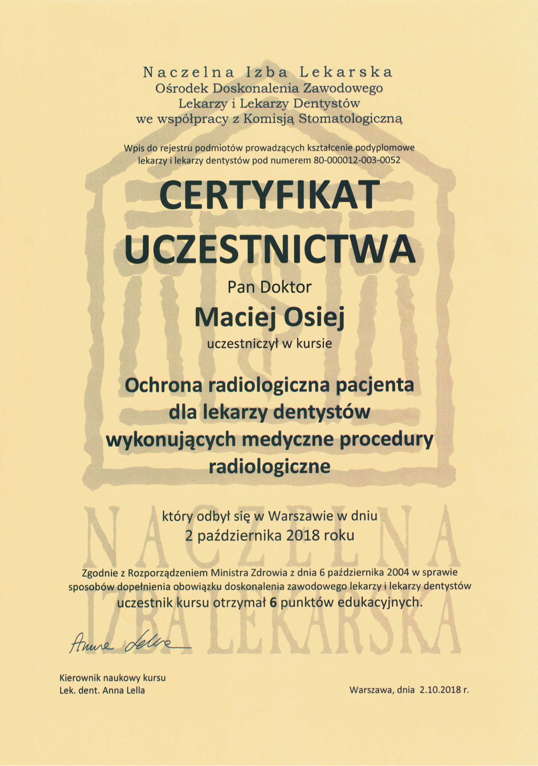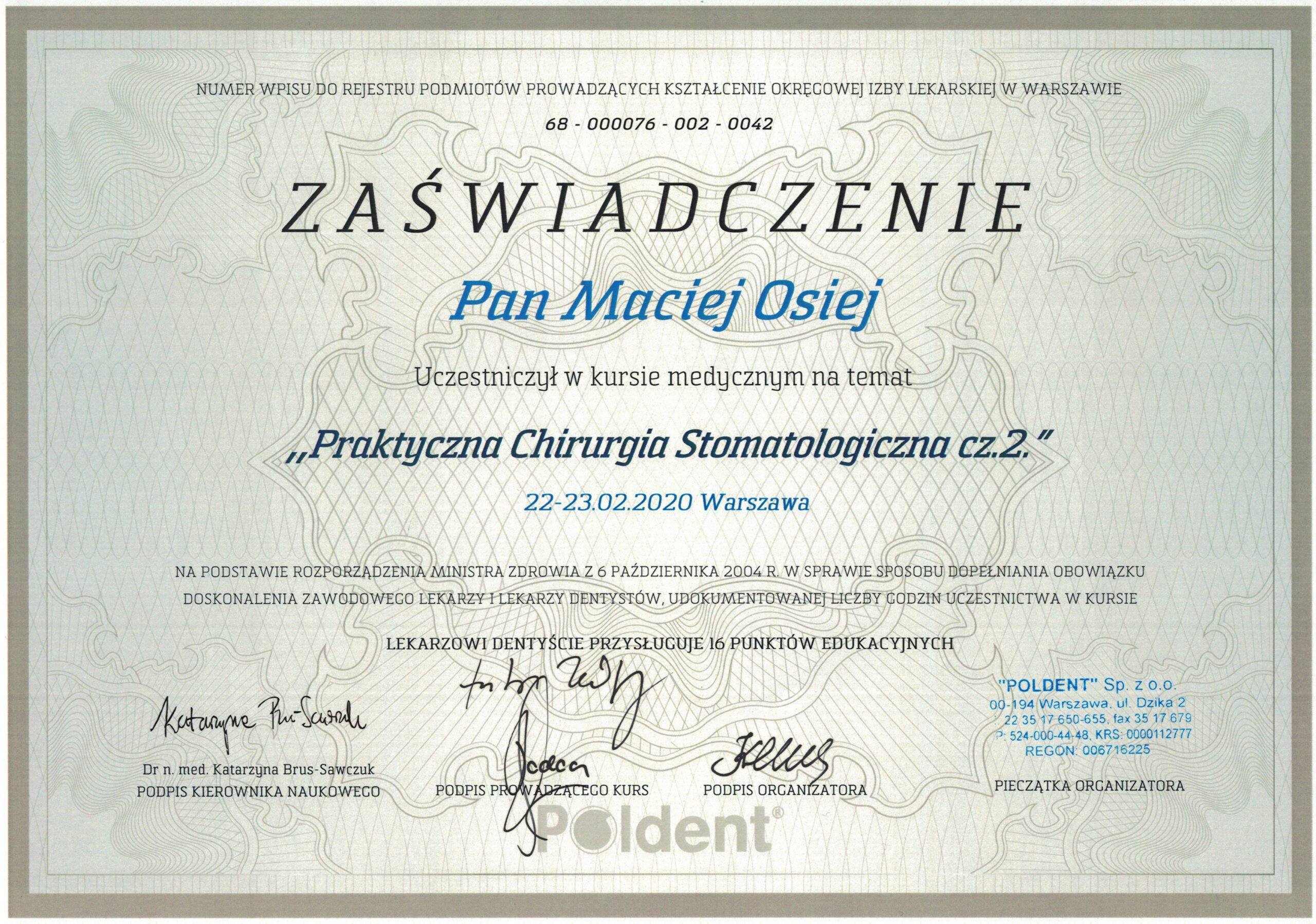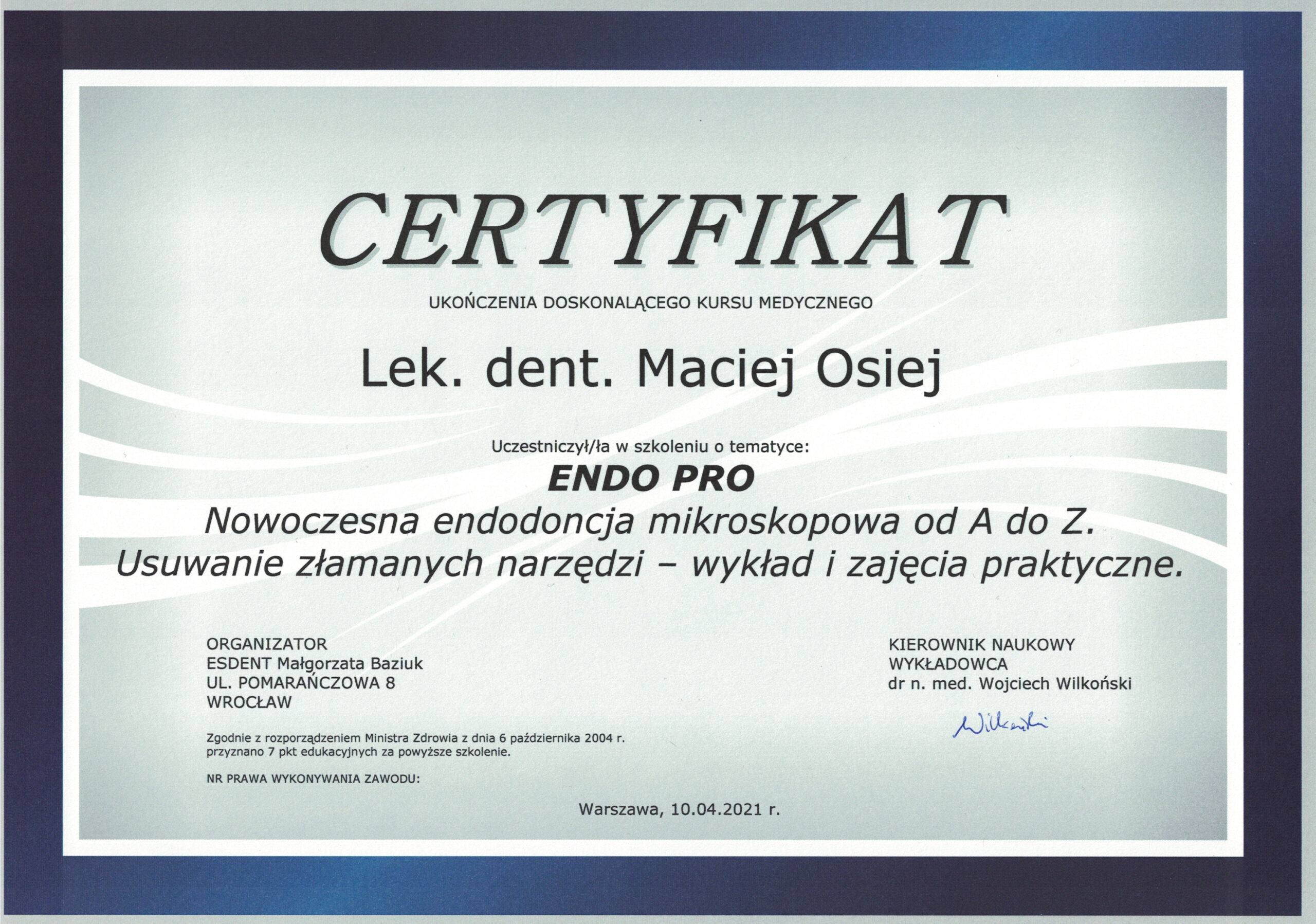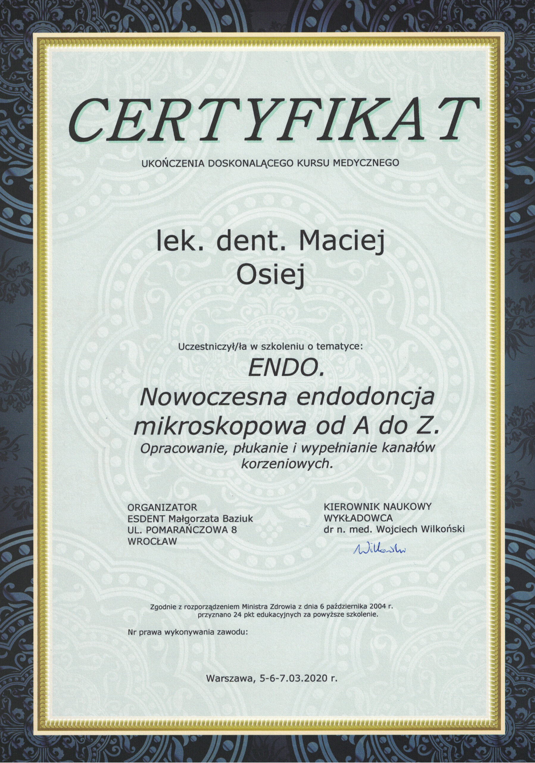 доктор дент. Мацей Оссей